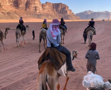 Nous commencerons cette excursion depuis le village de Rum. La visite à dos de chameau mettra en valeur certains lieux naturels et uniques du désert du Wadi Rum. Explorez le désert à un rythme naturel et visitez les principaux sites de la zone protégée du Wadi Rum lors de cette aventure de 4 heures.