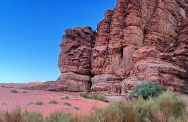 Overnight Tours also include a private tent (in Desert Camp) or sleeping equipment (Under the Stars). Dinner and breakfast. Desert 4x4 transport to/from Wadi Rum Rest House.