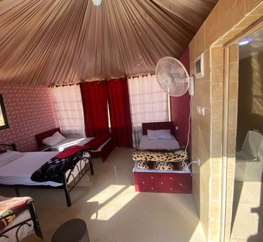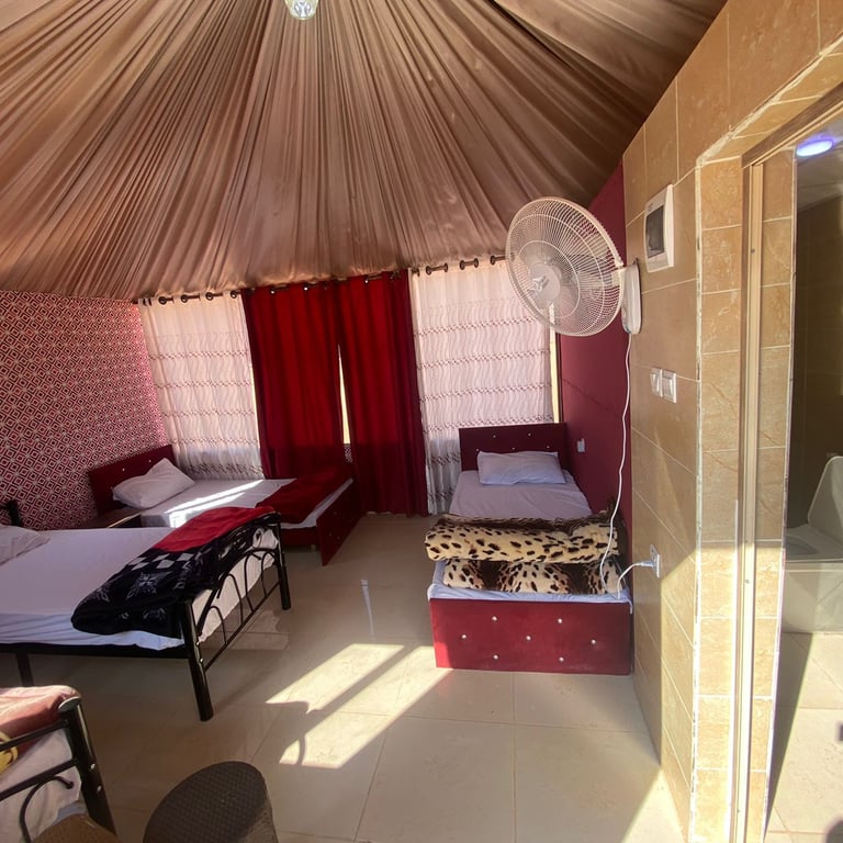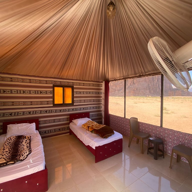 Discover our deluxe tents, a perfect blend of modern comfort and traditional charm, nestled in the breathtaking Wadi Rum desert, offering an unforgettable escape into nature.
